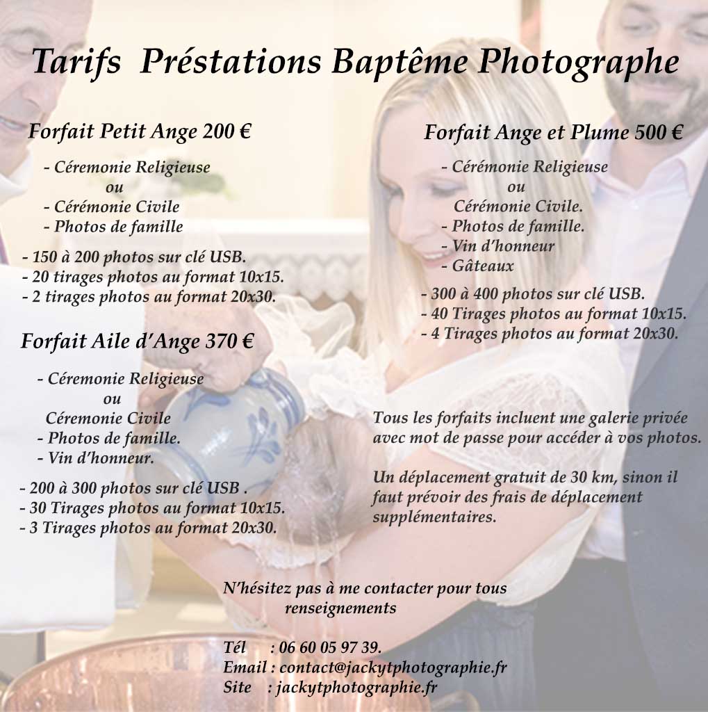 Tarifs photographe baptême