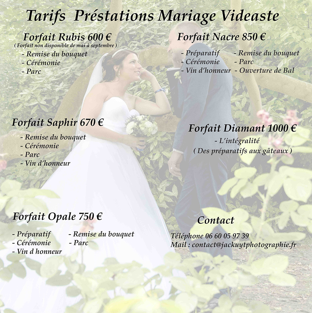 trouvez ici mes tarifs en ce qui concerne mes Tarifs vidéaste mariage.